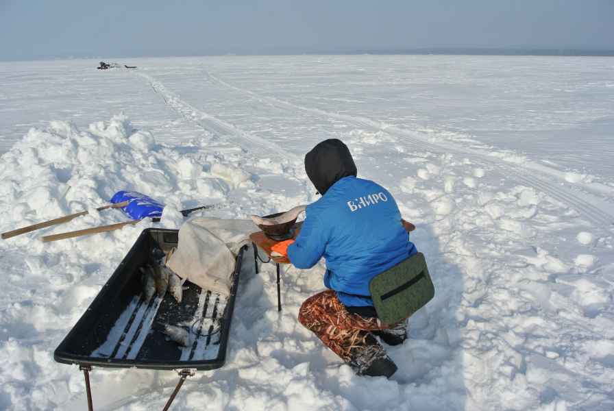 Промысловики в зимний период используют ставные сети с размером ячеи от 30 до 80 мм. Основными видами в промысловых уловах зимой на Камском водохранилище были лещ, судак, щука, реже встречались густера, плотва, окунь, налим. На Воткинском водохранилище основу уловов составляли лещ, судак, чехонь, густера, щука, язь, плотва, сом, налим, меньшее значение имели жерех, окунь, берш. В зимнее время рыбодобытчиками используется большое количество ставных сетей, и их переборка занимает значительное время. Во время мониторинговых наблюдений сотрудники «ПермНИРО» участвуют в переборке орудий лова промысловых бригад, а затем обрабатывают собранный ихтиологический материал.